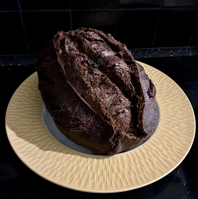 Pain au levain naturel, poudre de cacao non sucré, éclats de chocolat noir.