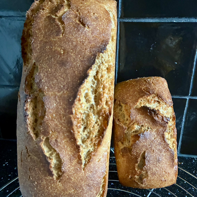 Farine de Petit épeautre, eau, levain de froment, eau, sel, amour, temps.